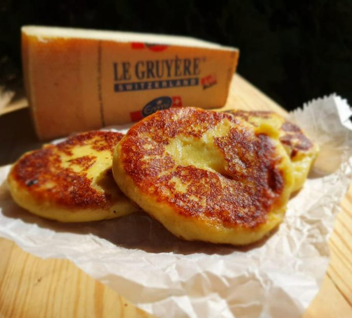 Mosa dem och tillsätt 60g riven ost, två äggula, 2 msk smör, 2 msk vetemjöl, vitpeppar