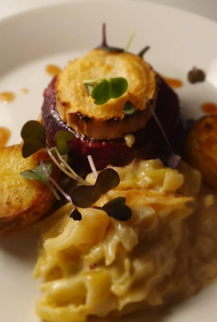 Koka rödbetorna i saltat vatten, låt kallna skala och skiva dem.